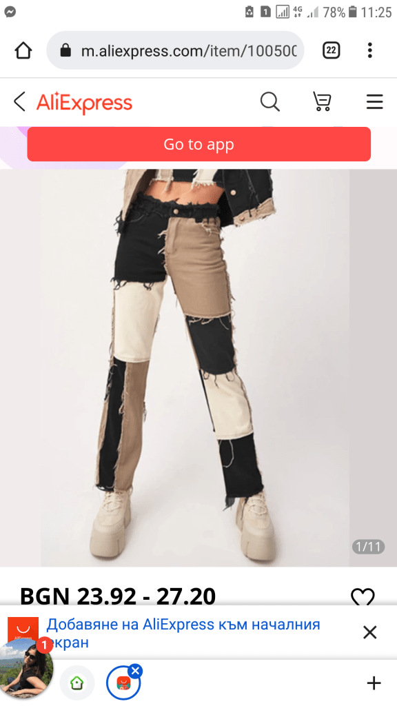 Когато за първи път видях момиче с такъв панталон по улицата в България бях просто УАААААУ!!! Очите ми останаха върху панталона й и буквално се зарекох, че ще си намеря и закупя и аз такъв в най-скоро време. Като малка аз много обичах да рисувам модели – дрехи и понеже още от тогава си бях леко шантава та предимно рисувах блузи и панталони с един дълъг и един къс ръкав или различни цветове ръкави и крачоли и т.н. нестандартни неща, таааа това буквално беше един от моите модели в материализиран вариант. Наистина много исках да си намеря и да си купя и аз такива дънки или панталони, ноооо това не се оказа чак толкова лесна задача..Първоначално ги бях видяла в няколко странички в Instagram, но първо че бяха на някакви цени от 70 лв. и второ, че бяха до размер L, в който ако е китайска работа едва ли аз щях да се побера..После намерих такива в китайските сайтове Aliexpress и Shein, цените там определено бяха доста по-поносими, но проблемът с размерите оставаше на лице, тъй като дори в XL размер след преглед на сантиметрите на бедрата, ханша и талията се оказваше, че нямаше да ми станат..Да, вярно е аз вече бях качила доста килограми, но и те си бяха чиста китайска работа..В последствие все повече започнах да откривам разни сайтове, които предлагат такива модели, но количествата им бяха изчерпани..Намерих и в един китайски магазин такива панталони, но те са в доста различни цветове, шарки и материи и съответно това, което открих в магазина беше тип най-обиктовен анцуг и естествено мен изобщо не ме устройваше този вариант..