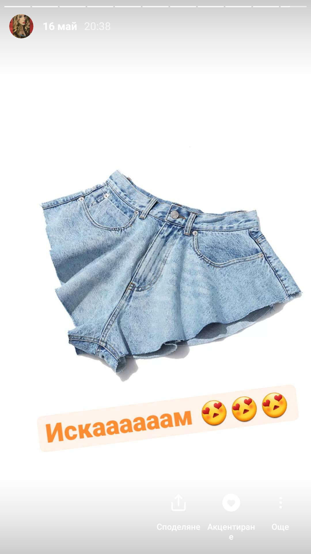 Това беше статусът, който публикувах и мислите, които предизвика в мен ситуацията като цяло. Естествено вече се разбра, че веднага си закупих късите панталонки и буквално не ги свалих цяло лято. Толкова са красиви и удобни, а и са нещо различно като мода. Не бях попадала на нещо толкова УАУ от времето, когато беше модата на късите панталонки с виждащи се джобове ❤ Бихте ли носили този модел къси деним панталонки?