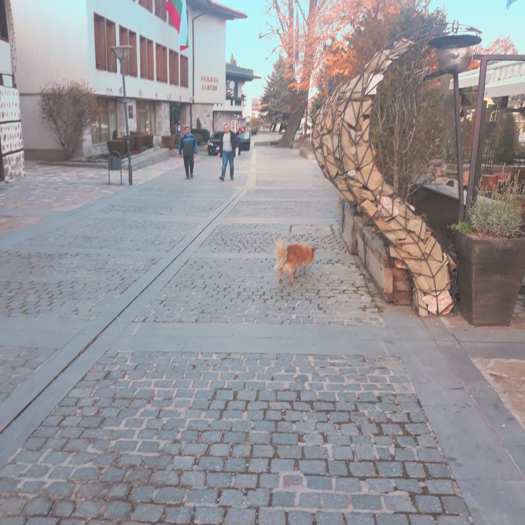 Срещнах Марти, „оранжевото кученце“, което ми открадна сърцето през 2017 г. и се влюбих в него от пръв поглед! Срещнах го в центъра на Банско някъде през пролетта..беше толкова красив! Никога няма да забравя онзи ден. Седяхме в кафе „Каравана чайка“, което се намира точно на площада на града. И той се появи, застана до мен. В момента, в който го видях аз просто извадих телефона си да го снимам!