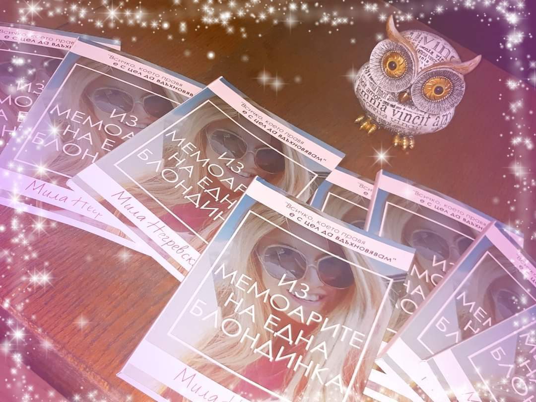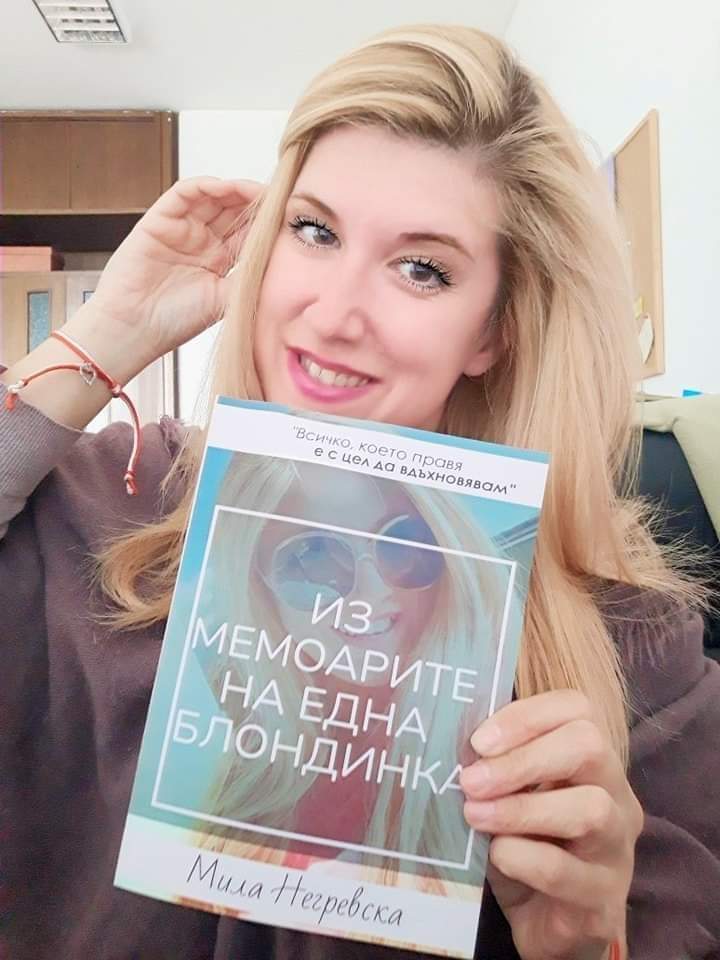 – Когато преди 7 години създадох своя блог в wordpress се налагаше да му избера заглавие. Тогава аз нямах само една ясна и конкретна тематика, за която исках да пиша в него. Исках да пиша за много и различни неща от живота ми. Една вечер просто ми хрумна, че след като ще пиша за преживени неща вътре, мога да му сложа заглавието „Из мемоарите на една блондинка”. В последствие при създаването на страниците ми в социалните мрежи аз отново използвах това име и за тях. То се превърна в моя запазена марка. Логично беше и първата ми книга да носи именно това заглавие!