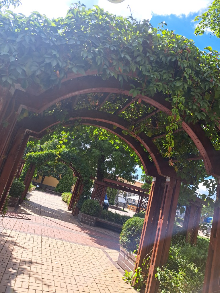Сградата на общината е много сладка също, пред нея има като тунелчета от лозя, с пейки под тях – още едно място, където може просто да седнете и да се наслаждавате на хубавото място и на почивката си там! Стават и много хубави снимки. Всъщност мястото е толкова красиво, че навсякъде там стават красиви снимки, неизбежно е!