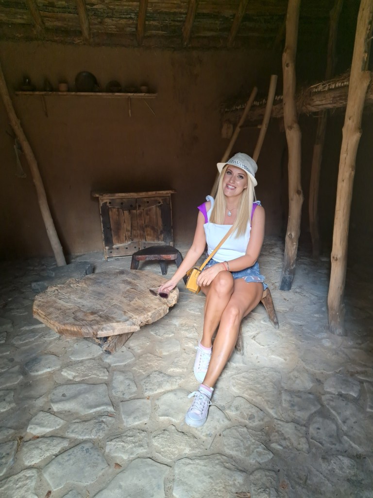 Като се нарадвахме на центъра се отправихме към останалите забележителности наоколо. На 2 километра южно от селото по добър асфалтов път се стига до Археологическия парк „Тополница“, състоящ се от музейна сбирка и пет неолитни къщички, уж така добре пресъздаващи живота и бита на неолитните хора. Сега моето възхищение от мястото приключи някъде там.. Първо тези къщички са реставрирани и нашите прадеди въобще не са живели в такива. Идеята е готина, но не и срещу 4 лв. вход. Абсолютно никой не влизаше в този музей, влезнахме ние и то защото аз настоявах, понеже исках да ги видя.. но не си заслужава, честно. И, моля ви се – магнити по 3 лв. най-евтиният..Ъъъ? В Рим са на по-ниска цена магнитите. Попрекалили са горе с комерсиализацията на мястото. Изненадах се как имаше и оферта срещу 25 лв. на човек и 70 лв. на къща да се преспи в тях и кой би се навил да спи на такова място срещу тези пари. На мен да ми ги дадат не бих легнала там, но всъщност хора всякакви. Аз дори на палатка или в каравана не бих преспала, знаейки че дори и ден няма да имам топла вода и няма да мога да си взема свеж душ.. Иначе извън този музей е пак много красив, много чист въздух.. заобиколени сте от планини и красива гледка.